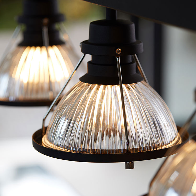 プリーツ状のカットが入ったガラスシェード or 上質なマット仕上げのアルミシェードが人気ダイナーの店内や厨房を連想させ、シンプルなのにどこか新鮮な趣き。落ち着いた存在感でお部屋の雰囲気をさりげなく演出します。